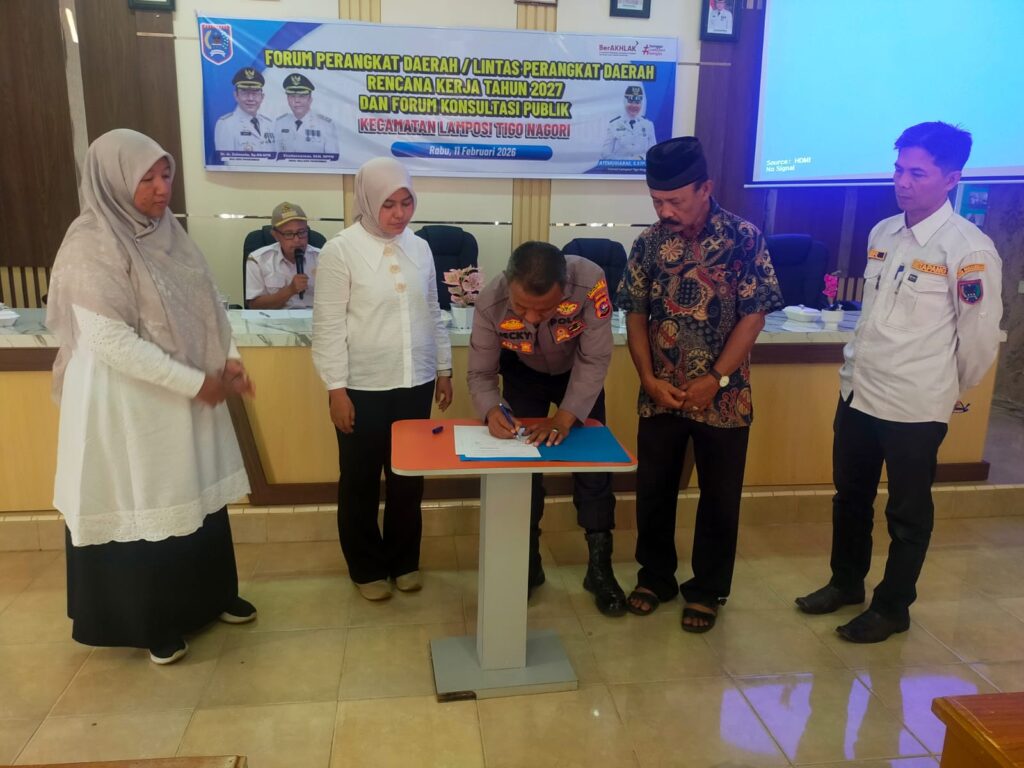 Forum Perangkat Daerah / Lintas Perangkat Daerah Rencana kerja tahun 2027 di Kecamatan Lamposi Tigo Nagori yang dihadiri oleh beberapa perwakilan instansi terkait seperti Bappeda, Polsek Kota Payakumbuh, Dinas Ketahanan Pangan dan ketua LKAAM Lamposi Tigo Nagori beserta Ketua LPM di setiap kelurahan yang ada pada Kecamatan Lamposi Tigo Nagori yang dilaksanakan pada hari Rabu tanggal 11 Februari 2027.